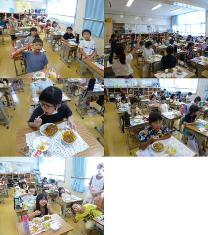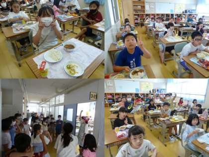 また、今日は食べようデーでした。普段は残りがちな麦ごはんですが、カレーということもあり、いつもよりたくさん食べてくれました。完食できたクラスは明日のお昼の放送で発表します。お楽しみに〜。