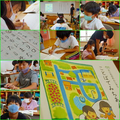 公園のブランコに集合するときに、地図を使わず、言葉だけで友達によくわかるように伝えるには、どういう言い方をするとよいのか、一人一人で考えて文章にしていました。