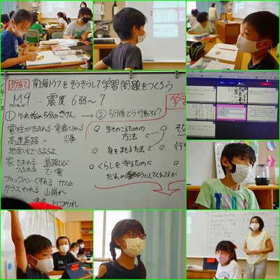 南海トラフ地震が起こったときの様子を想像し、自分たちが今何を学んでおくべきなのか考えて学習課題を作っていました。