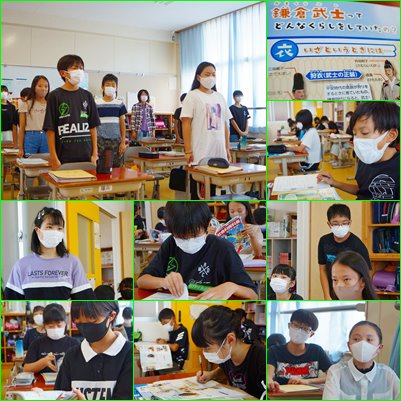 今日は、武士の衣食住について資料集等を用いて調べ学習をしていました。落ち着いて整然と学習が進む姿に、中学生になったときの様子がイメージできました。中1ギャップも超えていく準備ができているようでした。