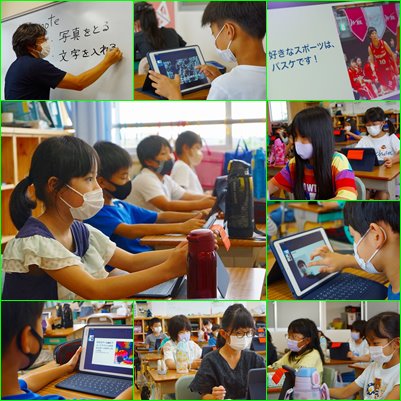 3年生の子どもたちは、これまでにKeynote(プレゼンを作成するアプリ)を使って、文字を入れること・画像を撮って入れることを体験してきました。最初に作ったのは、自己紹介だったようですが、今日は学校紹介に挑戦するようで、学校内のあらゆるところに出かけて画像をたくさん撮っていました。個人情報の保護や著作権の問題についても、これを機会に知っていくようです。