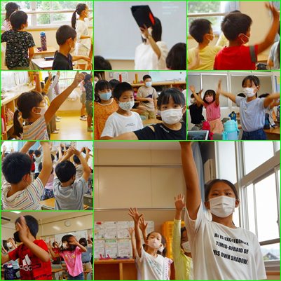 教室でのダンスの最終練習といった雰囲気でした。もう子どもたちはダンスをしっかりおぼえて自信満々です。キリリとした表情でキレのある動きでした。