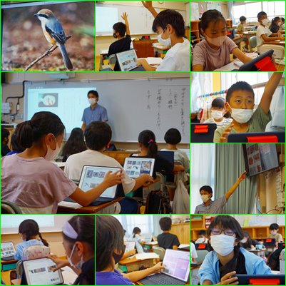 ネットで検索した画像とともに覚えていけるのでとても印象に残る様子でした。夏休みにすべてのクラスに設置が終了した大型モニターに画像を映し出すことで、よりきれいな画像での確認も可能でした。