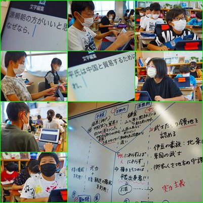 平氏と源氏の政治を比べて、どちらの中心人物がリーダーとして優れているかを考え、スピーチするためのプレゼンを作成していました。