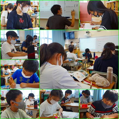 おでんの具にするはんぺんなどの練り物がどのようにして作られ、出荷されるのかを調べていました。キーワードを教科書から探し出し、文章の空欄に埋め込んでいきました。