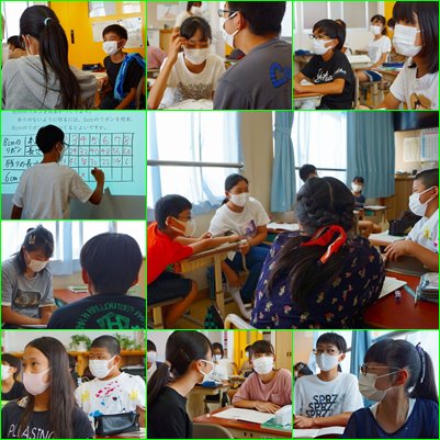 文章題に出てきた70cmのリボンを8cmと6cmのリボンに分ける方法について、表に書いて整理していました。2人で議論し、次には全体で議論し、様々な話し合いを積み重ねながら、理解を深めていました。