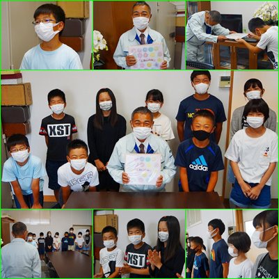児童会役員、総務委員それぞれが改修された校舎をどのように使っていきたいかを述べるとともに、感謝の言葉を書いた寄せ書きを送らせていただきました。