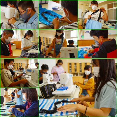 トートバッグの完成が近づいてきました。中には出来上がった人もいます。それぞれが選んだお気に入りの生地のかわいらしいトートバッグは、修学旅行でも使えそうですね。