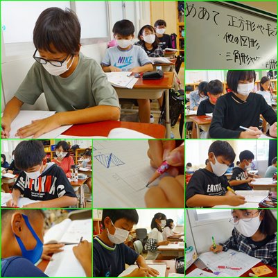今日のめあては、「正方形や長方形の面積を求める公式を使って、三角形や四角形の面積を求めよう」でした。学習内容は一通り理解し、問題にいくつか取り組んだところで、時間が来てしまいました。明日の授業参観は、答え合わせから始まる予定です。
