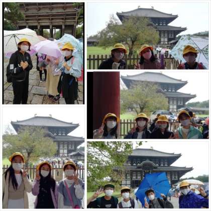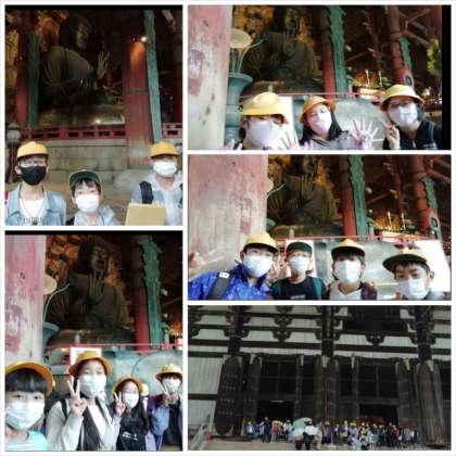 残念ながら雨が降ってきました。大仏殿の中は傘をささなくていいのでご機嫌です。
