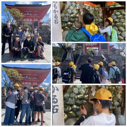 集まってきました。運転手さんと一緒に清水寺を見学してきます。おっと、おもかる石は、伏見稲荷です。