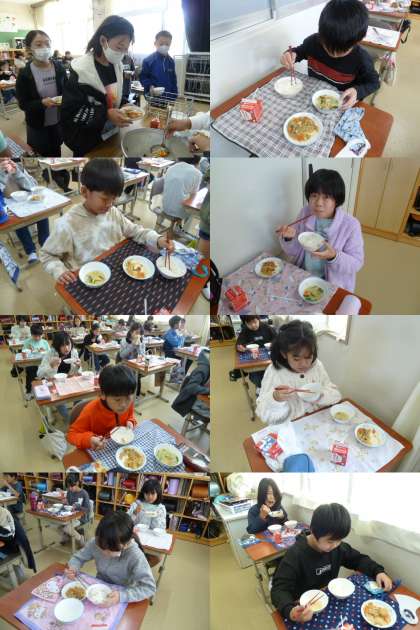 5年生の教室をのぞいてみると、多くの子がおかわりをしていました。