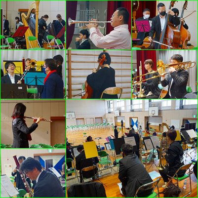 早速朝からオーケストラの皆さんが体育館でウォームアップをされていました。60名のオーケストラの演奏はどんなでしょうか。とても楽しみです。