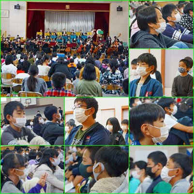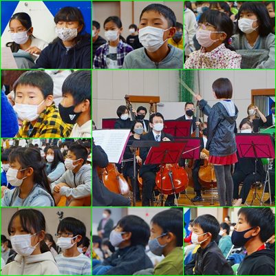 午後は、4〜6年を対象に演奏を聴かせていただきました。カルメンもフィンランディアも弦・木管・金管・打楽器別の演奏を聴かせていただいたり、構成をシーンごとに解説していただいたたりするなど、丁寧な説明の後での演奏ということで、子どもたちも興味深く聴くことができました。