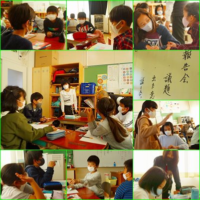 4年生は、学級での話し合いの練習をしていましたが、5年生はグループごとの話し合いをするための役割分担をしていました。3〜4人のグループでは、全員が必ず何らかの役割を果たす必要がありますから、一人一人の参加意識は当然高まります。
