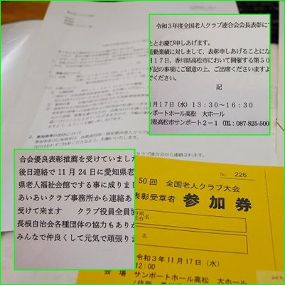 第1・第2クラブの皆さんが、全国表彰を受けることになったことは7月の「長根だより」でお知らせしました。表彰会場は高松市ということでしたが、コロナの影響もあり、11月24日に名古屋市内で行われることになったそうです。