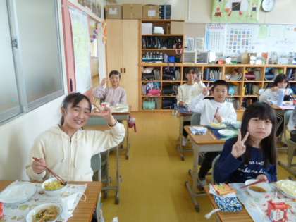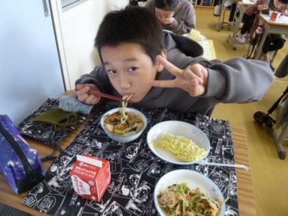 今日は朝から、ラーメンにテンションが上がっている子が多くいました。麺に中華あんかけをたっぷりつけて食べている子や麺だけで食べて、中華あんかけをスープとして食べている子など、様々な食べ方がありましたが、喜んで食べてくれてよかったです。