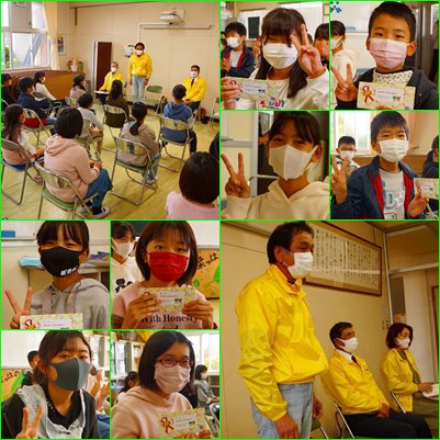 今回2名(5年FさんとFさん)の作品が最優秀作品として選ばれ、本日自治会より会長さんはじめ4名の代表の方においでいただいて表彰をしていただきました。2名の最優秀者はもちろん、今回参加したすべての子どもたちに図書カードの参加賞をいただきました。いつも自治会はじめ地域の諸団体・皆様には本当にお世話になっています。今回も子どもたちに活躍の機会を与えていただき、本当にありがとうございました。
