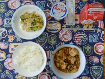 今日の給食は、ごはん・マーボー豆腐・中華サラダ・牛乳・ヨーグルトでした。