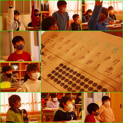 こちらは、これから2の3と同じ問題に挑戦するところでした。すでに知っている九九を使って、どうやったら一つ一つ数えなくても計算できるかを皆で議論しあっていました。2年生ながら、議論する様子はとても真剣です。こうした話し合いで身につける力が、「令和の日本型教育」(by文科省)で目指す学力でもあります。