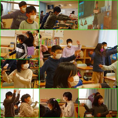 4の2の教室で皆が静かに、それでいてエネルギッシュに動き回っていました。スクリーンを見ると、懐かしい運動会の「ソーラン」の練習用動画(現在2年生の学年主任が作ったもの)が映し出されていました。