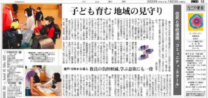 23日付の中日新聞、なごや東版のページににじの丘学園と長根小学校のコミュニティスクールの取り組みを紹介する記事が載りましたのでご紹介します。