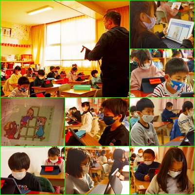 セリフ入りの絵を見ながら、子どもたちが考えていました。登場人物はくまさんとねこさんとさるさんです。くまさんが言いました。