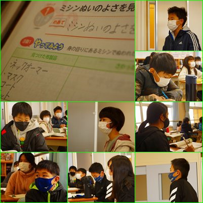 ミシンを使う前に、ミシン縫いのよさについて考えていました。先週から来ていただいている担任との関係は良好のようで、活発に意見が出されていました。