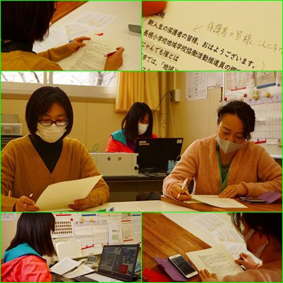 入学説明会で聞いていただくコミュニティ・スクールとねこP(PTA)の説明の準備が行われていました。素晴らしいプレゼンと原稿で、27日の発表がとても楽しみです。