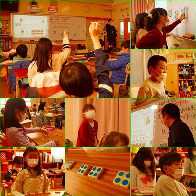 今日のめあては、「同じ数ずつに分けよう」でした。たくさんあるクッキーやキャラメルを同じ数ずつ分けると何人に配れるかを考えていました。数字を変えて、多くの問題に取り組んでいく間に、同じ数ずつに分ける感覚が身についていくようで、どんどん数字のブロックを操作するのがはやくなっていました。