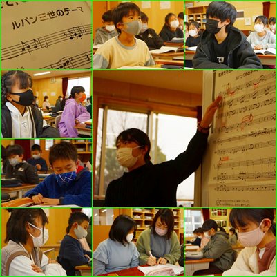「ルパン三世」の合奏に取り組みます。ダルセーニョ、コーダがあって、曲の行き方がなかなかややこしい合奏曲です。16ビートの軽快なテンポ感が出た良い演奏を目指してください。わかってくるとどんどん楽しくなってくると思います。