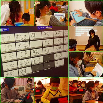 ICT支援員さんに来ていただいて、書いた漢字をオクリンクで送る練習をしていました。皆が書いた漢字がどんどんモニターに並び始めると、とても嬉しそうでした。