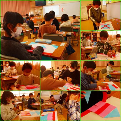 と言っていました。三角形と四角形を組み合わせていろいろな形を作るのですが、いろいろと工夫をしている間になんだか図工をやってきているような気がしてきたのでした。