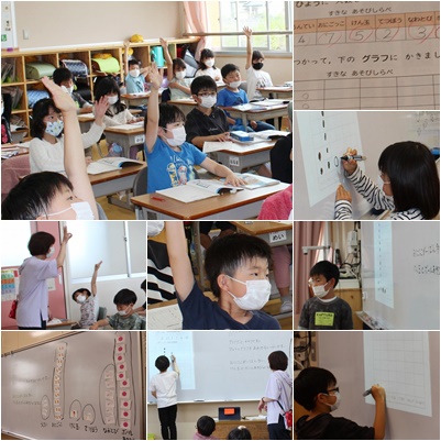 表とグラフ 公開日 2022/04/14 更新日 2022/04/14 学校・学年ニュース 2−1算数 表にしたものをグラフにしていきます。「当ててください」と言わんばかりに、手がピンと挙がります。グラフが完成すると、何かに気がついたようです。