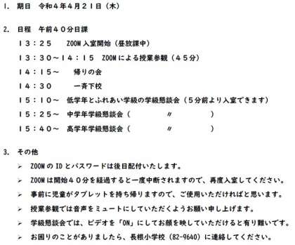 本日、オンライン授業参観を行います。お忙しい中とは、存じますが、ぜひご参加いただけますようお願い申し上げます。