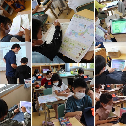 県名調べのプリント学習の後で、タブレットを使って県名当てクイズに取り組みました。これは、先日ICT支援員に教えていただいたサイトです。子どもたちへの直接的な支援だけでなく、楽しい学習教材等も提案していただいています。この後、教科担当がオクリンクで送ったグラフを使って学習しました。タブレットの使用が日常となっていますね。