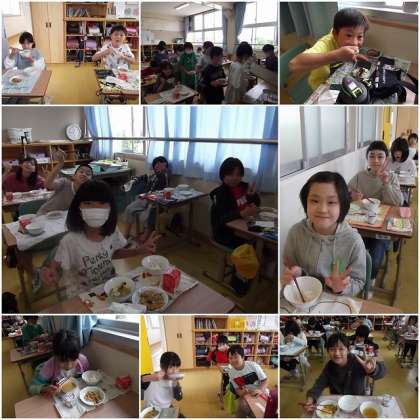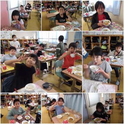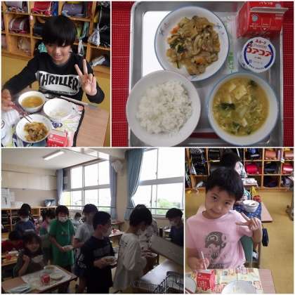 今日の給食は、麦ごはん・キムチと卵のスープ・豚肉のプルコギ・ヨーグルト・牛乳でした。