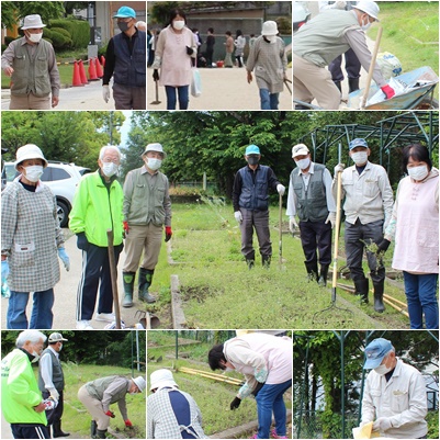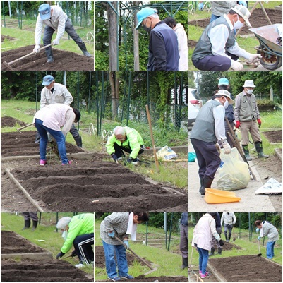 2年生の「野菜名人」の苗植えに向けて、ボランティアの皆様が畑を耕しに来てくださいました。初めは、お恥ずかしいぐらい草が茂っていましたが、草取りをして、耕して、肥料を入れて、あっという間にきれいに畝を作ってくださいました。いつもありがとうございます。