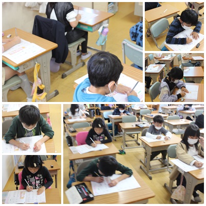 漢字の画の交わる位置に気を付けて書く練習をしました。交わる位置に気を付けるときれいに字が書けることがわかり、みんな集中して書くことができました。