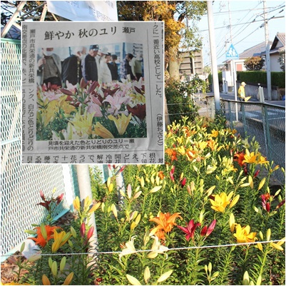 地域力向上委員会の方が植えてくださったユリが見頃となりました。オレンジに続き、いろいろな色が咲き始めました。先日の中日新聞にも共栄通りの記事が掲載されていましたのでご紹介します。