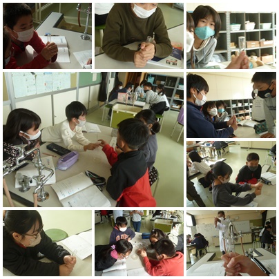 学習の課題づくりです。石けんの膜が張った試験管を握るとあら不思議。膜が・・・。この変化がこれから学んでいくことです。はじめに実験をし、その謎を解いていく理科の授業はとても楽しいです。