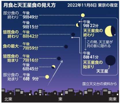 今日は、満月がすっぽりと地球の影に隠れる「皆既月食」が、東の空で見られます。しかも今回は「皆既月食中の天王星食」という極めてレアな現象も起きるそうです。