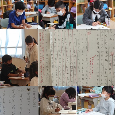 「すがたをかえる大豆」の説明文の読み取りを終え、書き方で工夫してあることをまとめました。次の時間は、いよいよ自分でオリジナルの説明文を書きます。『初めて知った!驚いた!』と興味を持ってもらえるような題材が見つかるとよいですね。