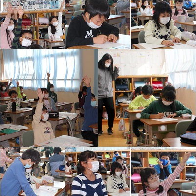 今日は、6年生の担任が授業をしましたが、いつも通りたくさん手が挙がっていました。
