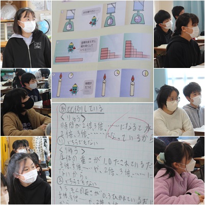 表のどこを見て比べれば、比例・反比例の判断ができるのかよく分かってきたようです。変化のしかたの説明もできるようになってきました。その後、ドリルにも取り組みましたが、あっという間に解くことができました。