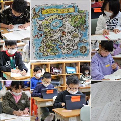 始まり、出来事(事件)、出来事解決、むすびと組み立てを考えてお話を作ります。物語が始まるきっかけや登場人物、場面の様子など全て自分で決めます。作家になったつもりで、筆を走らせていました。どんな冒険が待っているのか楽しみです。