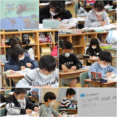 ものの温まり方のまとめの時間でした。発展学習の動画をみたり、確かめの問題を解いたりしました。実験したことは、しっかりと記憶に残っており、問題への取りかかりも早かったです。順調に進み、もうすぐテストだそうです。頑張ってね。