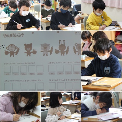 2学期のまとめに入りました。「なんばんめ」や「たし算やひき算の文章題」などよく考えて答えを出す問題に取り組みました。全部で3枚ありましたが、次々と出されるプリントにやる気満々でした。