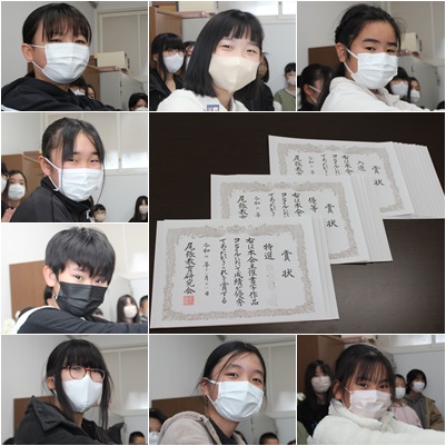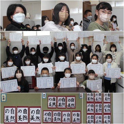今日は、6年生の表彰を行いました。毎年行っている尾書研コンクールですが、6年生の皆さんにとっては、小学校生活、最後のコンクールとなりました。各賞に入賞された皆さん、おめでとうございました。字が美しい人は様々なメリットがあるそうです。これからもいろいろな場面での活躍を期待しています。