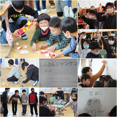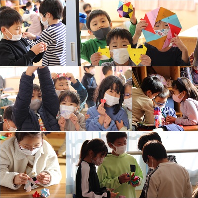 教室にもどると、今度はクラスの友達と賞品の折り紙を見せ合って、自慢大会が始まりました。皆、大喜びでした。